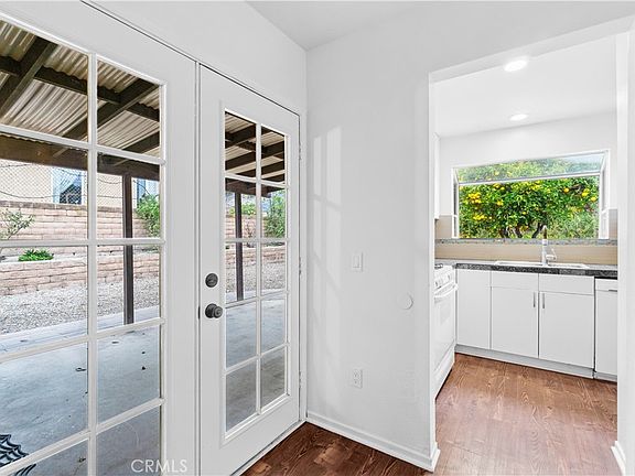 Welcome to Peacock Hills 55+ Senior Community! This single level twin home attached only at garage offers (2) two bedrooms plus (1) bonus room off kitchen, (1) bathroom, living room, dining area, own spacious private yard with fruit trees and covered patio space. Plus, low HOA fees ($10/month or $125 annually). Updates include: Brand new roof (Feb. 11, 2025), both front windows were replaced with double paned windows (2021), newer water heater (2021) and Bosch dishwasher. Upon purchase, in 2015, kitchen countertops/backsplash were updated with granite tiles and porcelain tile/glass accents on the backsplash. Luxury vinyl flooring throughout other than slate flooring in bathroom. Paver stone sidewalk installed along the side yard/covered patio and backyard. All interior freshly painted including garage epoxy floors. All (3) three doors leading to backyard/patio upgraded with French doors.