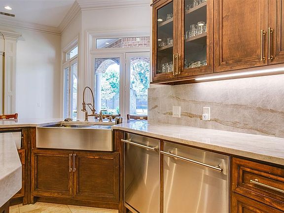 This extraordinary French estate is situated within the prestigious Strait Lane Estates area of Preston Hollow. A pair of grand entrance gates welcome you, surrounded by lush landscaping & a central drive court. The main house & its accompanying quarters exude elegance, ft. stone exteriors adorned w cast stone accents and meticulously crafted interiors. The property boasts numerous living spaces, a sophisticated paneled library, as well as game-media rooms. 4 charming fireplaces, a wine vault, an elevator, and 2 utility rooms. The expansive kitchen is equipped with SubZero & Viking appliances & an extensive pantry. The primary suite is complete w dual baths & a fully equipped exercise room, w additional storage. 6-car garage also offers a separated complete guest quarters above. The outdoor areas create a resort-like atmosphere, ft. a pool-spa, tennis court, cooking-dining porch, & brick gazebo. Home was completely remodeled in 2021. 2023-12-15