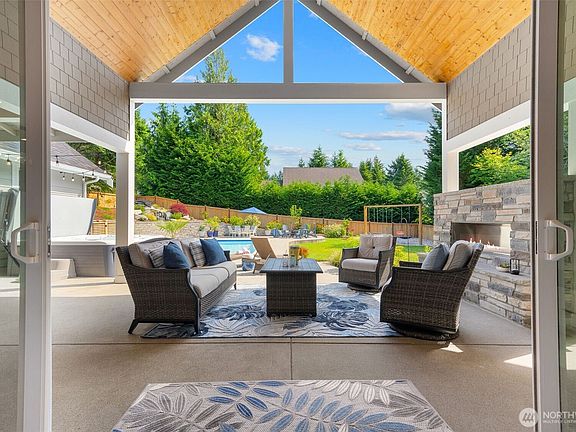 RARE Canterwood Find! Newer Build (2020) ONE Story 3,400SF craftsman w/ above garage bonus retreat (650SF) requiring “no work and all play” designed for entertaining and everyday living. Step outside to your private south facing fully fenced oasis w/ 1,000SF of outdoor covered living overlooking the heated resort-style pool, soothing waterfall & gas FP. Thoughtfully designed open-concept seamlessly connects great room, dining, gourmet kitchen & outdoor living. Primary offers spa-like retreat w/ free standing tub, luxury shower, heated floors & towel warmer. Enjoy 4 BRs w/ ensuites, rec room, large den, laundry w/ double stack W/Ds, large bonus (w/ ¾ BA) above 3-Car 1,100SF garage. Don’t miss this opportunity! Ask agent for amenities list.