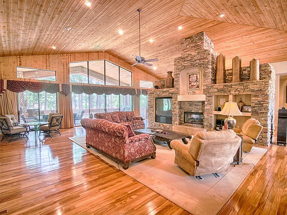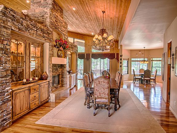 Situated perfectly at the end of a cul de sac and backing to the National Forest, this home has it all! Great care has been taken in the design of this home by the owner/builder to take advantage of the forest view from every back window. This home features 4 master suites, a gigantic game room, AND a theater room. Exceptional custom finishes are evident in each room with wood floors in the living areas, and double sided fireplace from the great room to dining room, and T & G wood ceiling. The stunning kitchen features triple ogie edge granite, central music and intercom system, Dacor, DCS, and Asko appliances, pull out shelves, & walk in pantry. The marvelous game room has an L-shaped bar with Alder cabinetry, sliders to back lower patio, T & G wall, and tons of room for every game table!
