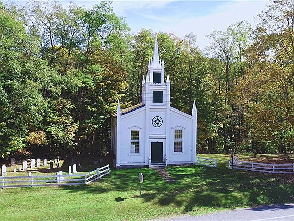 Set along the serene banks of the West Branch of the Delaware River, just steps from the iconic Fitch’s Covered Bridge, this remarkable former church with a historic legacy offers a rare and meaningful opportunity with an extraordinary setting for future endeavors. Built circa 1860, the structure embodies the craftsmanship and spirit of its era—its soaring tower, adornment of thirteen spires and a striking twelve-pointed star rising as a testament to history, reflection, and inspiration.