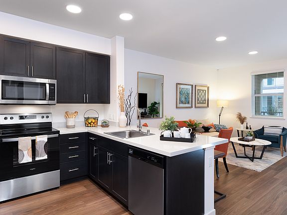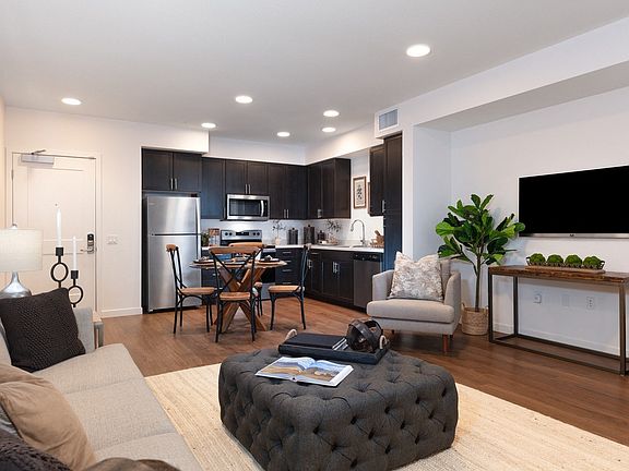 - Exterior features: , Balconies and Private Patios, Barbeques and Alfresco Dining Areas, Bicycle storage, Data Equipped with Comcast and AT&T, Designer Lighting Fixtures, Electric Charging Stations, Elevators and Stair Access Throughout, Exclusive Active Adult Community, Hardwood-Style Plank Flooring in Living Areas, Key For System to Access Building, Landscaped Outdoor Common Areas, On-Site Management, On-site Leasing Center, One- and Two-Bedroom Floor Plans, Package Receiving, Parking Available, Pet-Friendly Community, Premium Piedrafina Bathroom Countertop, Premium Quartz Kitchen Countertop, Stainless Steel Whirlpool Appliances, TV Lounge, TV Screens Throughout Shared Areas, Theater, WiFi in Select Amenity Spaces
