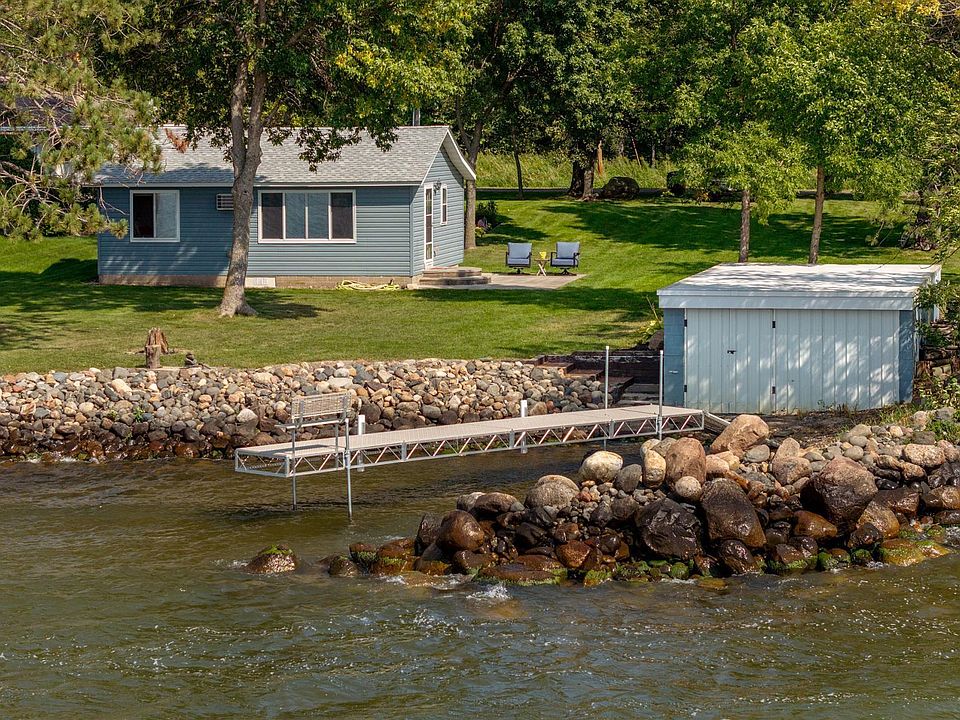 Welcome to your perfect lakeside retreat! This delightful one-level home features 2 spacious bedrooms and 1 bathroom, ideal for comfortable living and easy maintenance. Situated on the serene East side of the lake, you'll enjoy breathtaking sunsets from the comfort of your own home. The open-concept living area i perfect for relaxing, with large windows that frame stunning lake views and bathe the space in natural light. Step outside to your private outdoor haven, where you can unwind on the patio or enjoy leisurely days by the water. The property includes a convenient boat house, and dock. Whether you're into fishing, boating, or simply soaking up the tranquility of lake life, this home has it al. Don't miss your chance to own this slice of paradise.