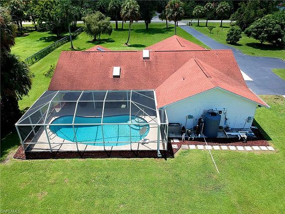 Seller will consider back up offers* Watch the VIRTUAL 3D Walk through Tours for this Remodeled, Upgraded, Private 4 Bed plus Den, 3 Bath Pool Home with Detached Workshop / Garage / Shop in Gulf Coast High School Zone; with excellent Curb Appeal sitting on 2.65 Fully Fenced, Mostly Cleared, Irrigated Acres in Collier Woods / Golden Gate Estates; Naples FL. The new addition & renovation is a Must See along with the new kitchen & upgraded bathrooms to include tile floors, granite counter-tops, soft-closing cabinets, pull out drawers, deep farmhouse sink & stainless steel appliances. Impact windows and newer AC were also added. This home has all the essentials for living in the estates; fenced-in yard with automatic gate, irrigation, newly expanded drain field, Whole House Reverse Osmosis system, new landscaping, new gutters, newer pool cage with Nylotec Screws. 20 x 21 detached metal full-electric outbuilding with a concrete slab that can withstand 180 miles/hour wind. Fruit trees include: 3 mangoes, 2 avocados, 3 orange, 1 key lime & 1 peach tree. Live on acreage but still be close to shopping, schools & parks. There is a sign on the property to help locate. Ask for Floor-plans