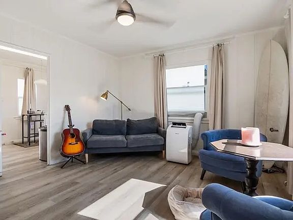 Welcome to your new home in sunny San Diego, CA! This charming 2-bedroom house offers an open floor plan and a host of desirable amenities. The interior boasts laminated wood flooring, adding a touch of elegance to your living space. The vintage kitchen cabinets add a unique, retro charm to the apartment. The property also includes washer and dryer hookups for your convenience. Step outside to enjoy your own large, private backyard, perfect for outdoor activities or simply soaking up the California sun. The large, fenced-in front yard, complete with turf, provides an additional outdoor space for relaxation or play. The home also comes with private outdoor storage, offering ample space for your belongings. With two dedicated parking spots, you'll never have to worry about finding a place to park. Nestled in a residential neighborhood, this house offers a comfortable living environment in a prime location.