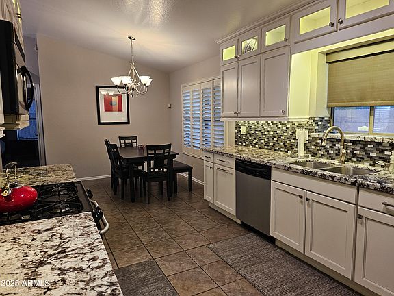 Welcome home to the highly coveted area of Desert Ridge. You'll love this home for the custom kitchen cabinets with interior lighting, high quality granite and jeweled backsplash. Master bathroom reconfigured to a large shower and custom vanity. Large master suite has wood-like flooring while the main house has slate-like tile. Other updates include: fresh interior and exterior paint, refurbished pool, new refrigerator, newer water heater. The convenience this home offers is mind boggling. Desert Ridge is known for shopping and restaurants but the access this home offers to the loop 101 and SR 51 offer you a quick trip to Scottsdale, Tempe, Glendale and Sky Harbor airport. Community has many paths for walking and exploring nature and play zones.