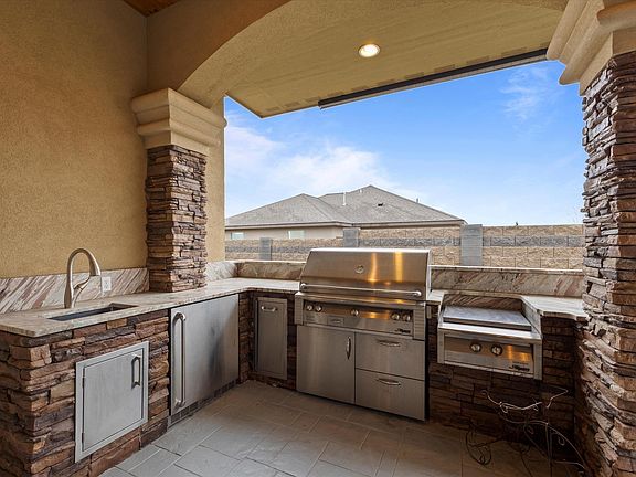 MLS# 281587 Luxury Custom Home on a Corner Lot – Designed for EntertainingExperience the pinnacle of luxury living in this stunning one-owner, custom-built home situated on a desirable corner lot. From the moment you arrive, you'll be captivated by the exquisite stucco exterior, elegant masonry, and custom doors that set this home apart.Step inside to an open-concept layout that seamlessly blends elegance and functionality. With three spacious bedrooms, a dedicated home office, and 2.5 beautifully designed bathrooms, this home is perfect for modern living. High-end finishes, impeccable craftsmanship, and a thoughtfully designed floor plan create an atmosphere of refined sophistication.The gourmet kitchen is a chef’s dream, featuring high-end appliances, including a gas range, ample cabinetry, a large island, and two sinks for ultimate convenience. Whether preparing meals or entertaining guests, this kitchen offers both style and functionality.The backyard is a true entertainer’s paradise, featuring a custom pergola and a fully equipped outdoor kitchen—ideal for hosting unforgettable gatherings. Whether you're relaxing or entertaining, this outdoor space is designed to impress.Don’t miss the opportunity to own this architectural masterpiece. Schedule your private tour today!