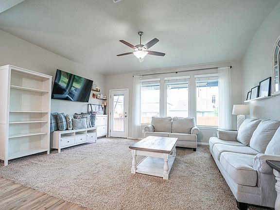 Welcome to your new home at 4721 Ranahan Pass, where modern comfort meets elegance. As you step inside, you're greeted by a spacious dining room, featuring wood-like vinyl planking and neutral tones that create a warm, inviting atmosphere illuminated by a chic hanging fixture, perfect for enjoying meals. The kitchen is a dream, boasting granite countertops, a stylish tile backsplash, and stainless steel Whirlpool appliances. Imagine preparing meals with ease on the gas stove, surrounded by ample cabinet space and a convenient walk-in pantry. Adjacent to the kitchen is the living room, complimented with carpet and bathed in natural light. Off the kitchen and living room you'll find a haven of relaxation in the master bedroom. This retreat offers privacy and comfort, ample natural light and is complete with an ensuite bathroom featuring a tiled shower, dual vanity sinks, and sleek Moen fixtures-including a handy wand for added convenience. Attached to the en-suite is the walk in closet boasting storage and shelf space. Upstairs there are three generously sized bedrooms, each with its own walk-in closet and ceiling fan for optimal comfort. A centrally located full bathroom ensures convenience, featuring a bathtub with shower, ideal for both quick refreshes and relaxing soaks. Entertainment and leisure are easily accommodated in the loft area and the separate game room, providing ample space for activities or quiet relaxation. Meanwhile, the practical aspects of daily life are well-managed with a utility room equipped for full-size washer and dryer connections, along with additional storage on a built-in shelf. Outside, the level lot offers a well-maintained privacy fence, and a covered patio area perfect for enjoying outdoor gatherings or simply unwinding in peace. The property includes a water softener and sprinkler system, ensuring both comfort and convenience year-round. This home is not just a place to live but a sanctuary designed for modern living at its finest. With upgraded finishes, thoughtful amenities, and a layout designed for both functionality and relaxation, 4721 Ranahan Pass is ready to welcome you to a life of comfort and style. The HOA amenities include a park/playground, pool, and jogging trails with access to Schertz Cibolo Universal City ISD.