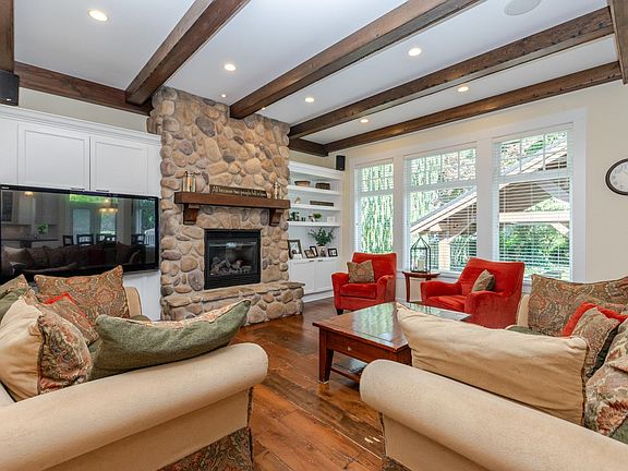 Natural stone countertopsWide plank hardwood floorsTheater roomLush backyard oasisInground poolFire pitBeautiful garden seating areas