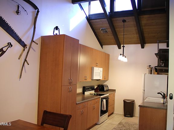 New carpet and fresh paint throughout. Centrally located, close to downtown shopping, restaurants, and entertainment. Two covered parking spaces and personal storage on site. Vaulted ceilings, skylights and pergola covering 2/3 of the large patio. End unit close to the community pool and hot tub. Washer/Dryer, microwave, refrigerator, dishwasher and wall mounted flat screen (living room) included. Tankless water heater, central air, and ceiling fans in all rooms.