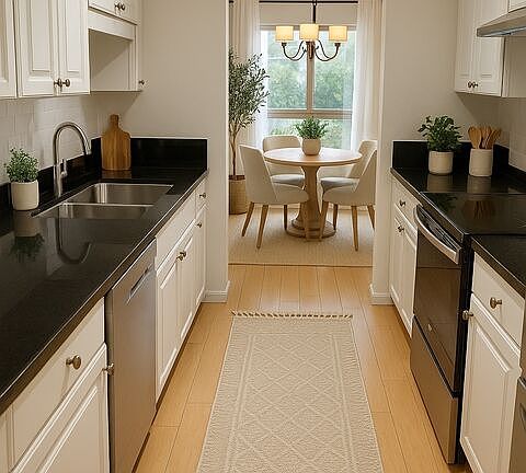 Abundant natural lightSleek black countertopsWell-sized second bedroomSpacious primary suiteGenerous closetWalk-in showerUpdated appliances