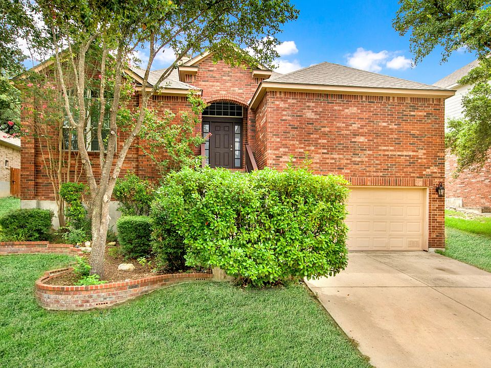 Beautifully maintained one-story home nestled amidst lush landscaping in the gated neighborhood of Stonegate Hill. This charming single-story home with 3 bedrooms, 2 full baths, and study offers an open concept with floor to ceiling windows offering plenty of natural light. Impressive entryway with ten foot ceilings leads to the living area with a gas fireplace and separate dining area. Kitchen offers solid countertops, breakfast bar, 42 inch cabinets, and generous storage. The primary suite features a private bath with separate shower, garden tub, and double vanities. The study and secondary bedrooms are on the other side of the home for privacy. Enjoy outdoor gatherings under the custom-built covered patio overlooking the mature trees. Two-car garage has double height ceiling allowing for unlimited storage or a second level. Situated in the highly acclaimed area of Westover Hills in Far West San Antonio, residents enjoy amenities including swimming pool and tennis courts. Experience the rural feeling with all of the conveniences and employers close by. Minutes to Hwy 151 and Loop 1604, Sea World, and HEB.