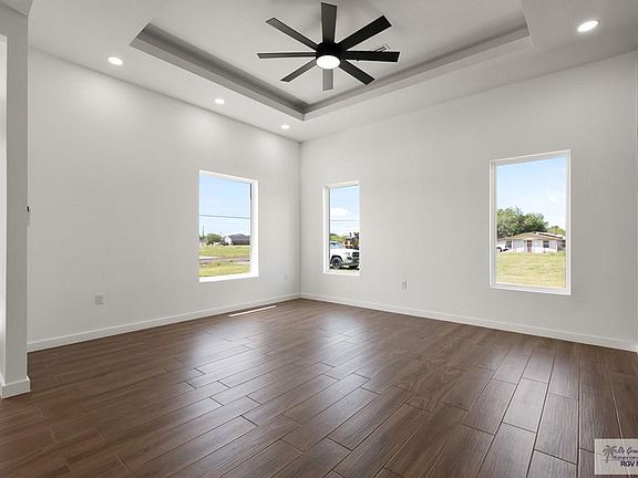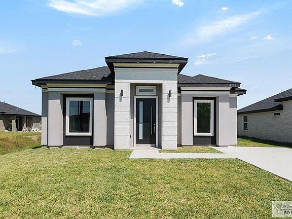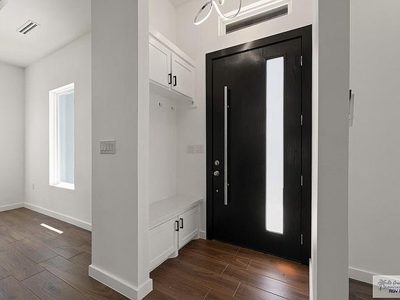 New Construction featuring 3 bedroom 2 bath, foam insulation in attic and walls, wired for security system, tiled throughout, open floor plan with built in mud room area at entrance, quartz counters, glass tile backsplash in kitchen, recess lights, primary bedroom with double vanity and walk in closet with built ins. Nice size yard with patio in back of property. Home is located close to Space X, L&G Plant and South Padre Island. Take a look as this home won't last long.