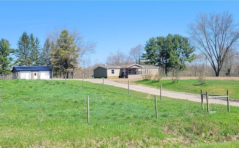 Spacious floor plan modular ranch with 3 beds 2 baths sitting on a wonderful 6.9 acres. Lots of recent updates including flooring, siding, roof and a/c, just to name a few. This property has it all. Brand new detached garage with concrete floor, wired and ready for its new owner as well as a fenced pasture with shelter/stall for your 4H projects or those horses you're looking to let run. Schedule a showing today before it's gone.