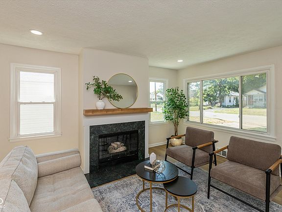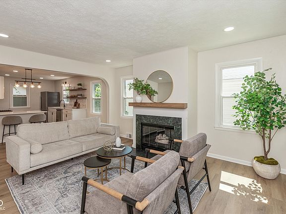 Thoughtfully updated 3-Bed, 2-Bath bungalow with a partially finished basement and a large, mostly fenced backyard-designed for comfort, convenience, and modern living. A dark wood-slat covered front porch welcomes you into a bright, open layout filled with natural light and soothing neutral tones. The main level features an inviting living area with a gas fireplace, a sleek modern kitchen with quartz countertops, a built-in coffee bar, floating wall shelving, arched built-ins, brand-new stainless steel appliances, cabinetry, elegant fixtures, vanities, and vinyl wood-plank flooring throughout-perfect for today's lifestyle. The partially finished basement with exposed ceiling provides a spacious, flexible area for a family room, home office, or entertainment space. Step outside to a backyard framed by mature trees for natural shade and privacy. Mostly fenced with convenient driveway access, it's ideal for pets, children, or outdoor entertaining. Located in the coveted Bellaire community of So-Bro, just minutes from downtown, Broad Ripple, the Nickel Plate and Monon Trails, and East Indy's best coffee shops, breweries, restaurants, parks, and the Indiana State Fairgrounds & Event Center. Schedule your showing today and make this move-in-ready home yours!