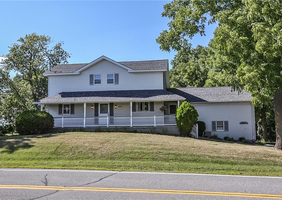 Remarkable Geneseo farmhouse with 80 acres of Agricultural farm land! This three bedroom, two full one half bath home features an open concept living space with exposed beams, Parkay wood floors, vaulted ceilings and wood burning fireplace with custom cut stone facade overlooking the flat surrounding acreage currently leased for agricultural purposes. Features include a first floor owners bedroom with new vinyl flooring and ensuite bath equipped with Jacuzzi tub, stand up shower and double vanity. First floor laundry makes it easy for those who may require first floor living, large sprawling rear deck and wraparound front porch. Two massive barns with newer metal roofs, attached two car garage equipped with extra storage and workshop area. Partially finished basement recreation room and egress door. Incredible value and potential!