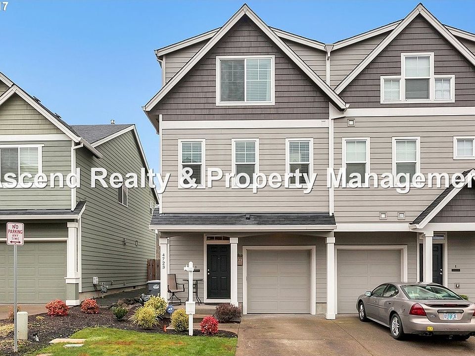 Beautiful townhome minutes to multiple Intel locations, Costco, Hillsboro airport & more. 3 bed or 2 & home office. 2 beds on top floor and 1 on ground floor. Lower bed has slider to back yard area. Stainless appliances - dishwasher, refrigerator, microwave & gas range. Kitchen also features granite counters & island. Open floor plan - living/dining/kitchen on 2nd level. Wood floors on ground & 2nd level. Vaulted ceilings. Primary bed has walk in closet. One car attached garage. Solar power & wired for electric car charging! Fenced back yard area. Neighborhood playground. Tenant responsible for all utilities (water/sewer, gas, electric, garbage & solar) and back yard care. NO smoking/vaping. NO pets. Brookwood/Brown/Hillsboro