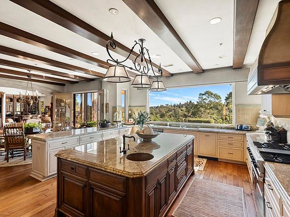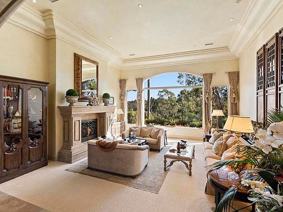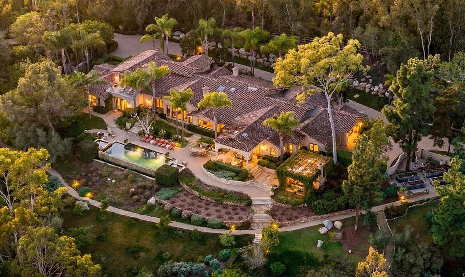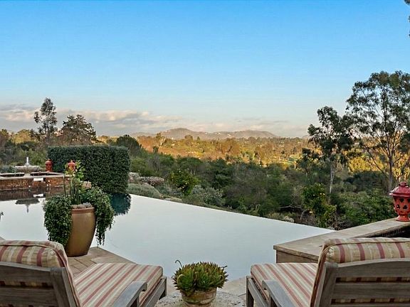 A rare sense of calm, scale, and intention defines 4724 El Aspecto, where panoramic mountain and golf course views stretch across more than four private acres in one of the West Side Covenant’s most desirable settings. This is a property that feels composed rather than staged—designed for privacy, comfort, and the kind of lifestyle Rancho Santa Fe is known for. The home lives primarily on a single level, offering an ideal floor plan that balances openness with retreat. Five bedrooms plus an office are complemented by a generous upstairs guest suite with its own private balcony—perfect for hosting with ease while preserving privacy for both residents and guests. The primary suite is exceptional in both size and function, featuring dual spa-inspired bathrooms and oversized walk-in closets that create a true sanctuary within the home. Indoor spaces are thoughtfully curated for both daily living and entertaining. A chef’s kitchen with premium appliances anchors the home, while a temperature-controlled wine cellar and dedicated in-home gym elevate its livability. Throughout, the layout flows effortlessly to the outdoors, where expansive entertaining and dining areas—including a built-in bar and grill—invite year-round gatherings with family and friends. The exterior experience is equally compelling. An infinity-edge pool and spa overlook sweeping views, while manicured rose gardens, raised-bed vegetable gardens, and a mature fruit orchard add both beauty and purpose to the landscape. A gated driveway enhances privacy and security, leading to a four-car garage as well as a generously sized detached workshop and additional garage space—ideal for collectors, hobbyists, or expanded storage. Quietly positioned yet exceptionally convenient, the property offers incredible walkability, moments from the Rancho Santa Fe Golf & Tennis Club, Rancho Riding Club, Roger Rowe School and Rancho Santa Fe Village. In addition to just a quick drive to the beaches, shops and dining of Del Mar, Solana Beach, and Encinitas. 4724 El Aspecto is a refined West Side Covenant offering that delivers space, views, and lifestyle—without compromise.