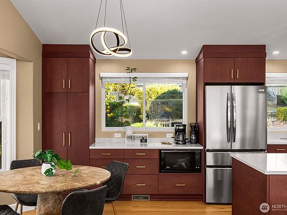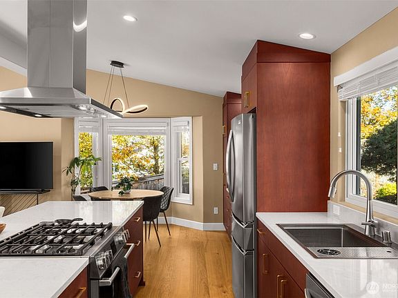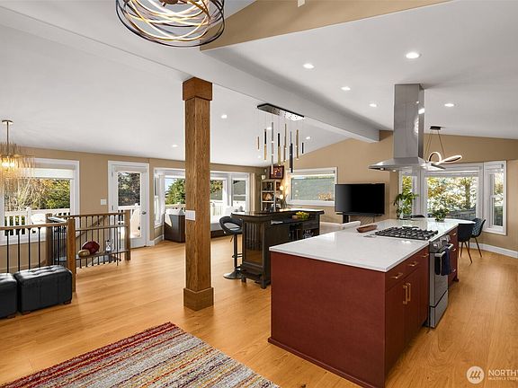 Edgewater Rambler // Experience elevated living in this tastefully renovated open floorplan home with three main-level bedrooms plus a fourth bedroom, home theater, and two bonus rooms in a bright daylight lower level—an ideal MIL/ADU opportunity. Over $350K in thoughtful upgrades include a fully renovated designer kitchen, double lifetime metal roof, electrical panel, Anderson windows, hardwood and carpet flooring, water heater, and more! The spacious primary ensuite features a walk-in shower, soaking tub, oversized closet, and French doors leading to the deck. Enjoy the sea breeze in your private backyard with a patio and hot tub, all located within the top-rated Mukilteo School District and Everett’s sought-after Edgewater neighborhood.