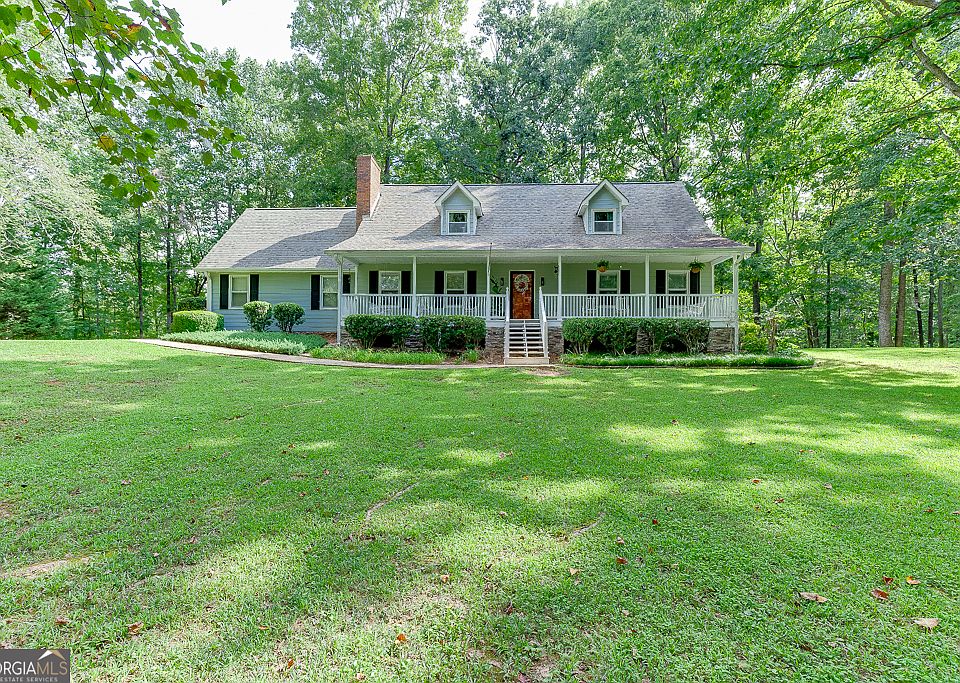 Charming Cape Cod on 5.22 Acres Near Lake Lanier - A Nature Lover's & Bird Watcher's Paradise! Fall in love with this stunning 4-bedroom, 2-bath Cape Cod home, ideally situated on 5.22 acres of privacy and natural beauty. Featuring a sought-after primary suite on the main level, this home offers the perfect blend of comfort, function, and scenic tranquility. Enjoy quiet mornings and peaceful evenings on the spacious rocking chair front porch, overlooking a beautifully landscaped, level front yard. The private, wooded backyard offers a creek, waterfall, and walking/ATV trails, making this property a true retreat for outdoor enthusiasts - and a bird lover's paradise, where woodpeckers, blue jays, owls, hawks, and cardinals make regular appearances. A 1,200 sq ft workshop with electricity provides endless possibilities for mechanics, woodworkers, or gardeners. Additional highlights include boat/RV storage, two separate driveways, a crawlspace foundation, and a stone patio in back ideal for entertaining or enjoying your morning coffee. Inside, you'll find new laminate on the main level, a kitchen with granite countertops, island, breakfast bar, and a separate dining area. The cozy family room features a wood-burning fireplace, perfect for those cool evenings. A reverse osmosis water filtration system ensures fresh, clean drinking water. Upstairs, you'll find generously sized secondary bedrooms with massive closets. Don't miss the sunroom - a bright and peaceful space perfect for an office, reading nook, or simply watching the local wildlife. This one-of-a-kind property truly has it all: privacy, space, charm, and location close to Lake Lanier. Schedule your showing today!