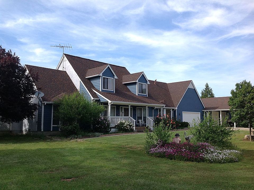 Cape Cod style, two story. A very large Master bedroom + a connected bedroom and bath downstairs, two bedrooms plus full bath upstairs.