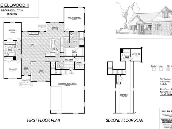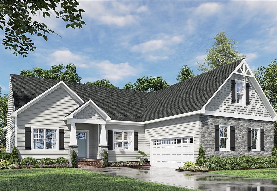 UNDER CONSTRUCTION! Spec Home with August delivery. Our newly designed Ellwood II floorplan on a gorgeous homesite coming soon to Brickshire! This amazing home features mainly one level living, with an additional full bed and bathroom upstairs that can be used for anything you like! When you walk into this home you're greeted with a functional space that just works. The open dining space (which would also work as an office) flows into the open great room, spacious kitchen and dinette. The primary bedroom has it's own wing of the home, with dual sinks and separate shower and soaking tub. The walk in closet is huge! A mudroom, laundry space, and additional 2 bedrooms and full bath complete the first floor.