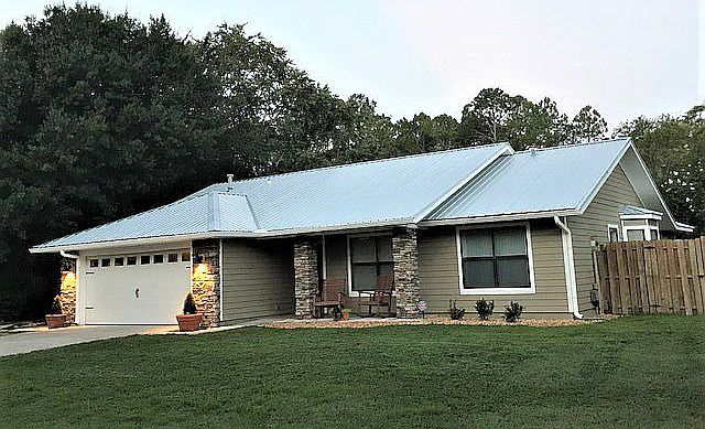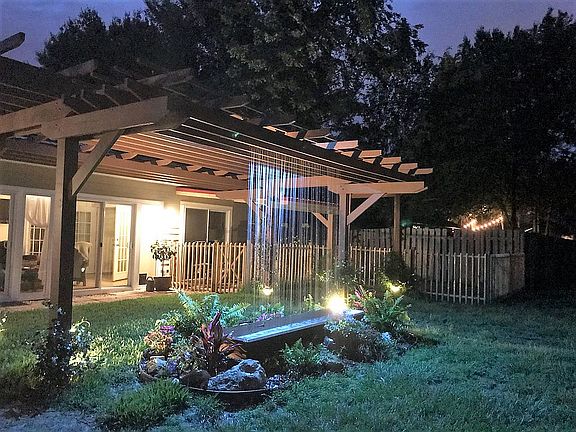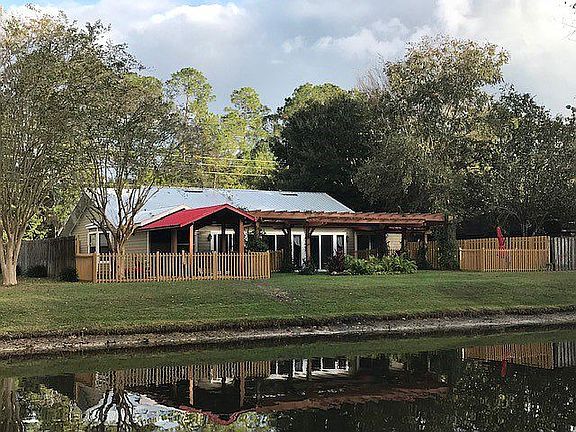 Completely remodeled 3 BR, 2 Bath home, plus home office, conveniently located off NW 53rd Avenue. The home views a beautiful pond with fountain display from the rear and has many features designed for outdoor living, to include a large, covered patio area and a very large, custom built trellis covered with both Confederate and Carolina Jasmine. The trellis includes a rain wall recycling water from a custom built trough below. All siding was replaced with Hardie Plank and Cultured Stone and a metal roof was added for its beauty and durability. The home includes cozy, air-conditioned lanai with its wood ceiling and batten strips on the walls, featuring double glass doors for access to it from the living room, kitchen and master bedroom and it has a total of 24 feet of glass along the back facing the pond. There are double glass doors to an adjacent home office, also with 6 feet of glass overlooking the pond and its own covered patio. The kitchen and both bathrooms have granite countertops. The flooring is ceramic tile in the living areas and luxury vinyl planking in the bedrooms. There is both a double car garage with built in shelving and a 6’ x 10’ storage shed with double doors integrated into the architecture on the side of the home. The home sits on a short cul-de-sac street with minimal traffic and right across from a north-south paved bike path and a block’s walk to Norton Elementary. The almost new high quality Samsung washer and dryer remains with the house.
