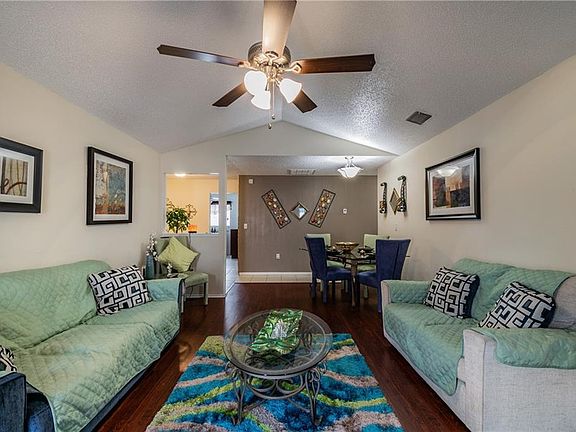 WELCOME HOME! This beautiful property has so much to offer. It features 3 bedrooms, 2 full bathrooms, and a 2 car garage all within 1,292 sqft of living space. The living room area is a welcoming space, covered with tile flooring throughout and painted with neutral colors. The kitchen is a large area with cherry cabinets that offer lots of cabinet space, stainless steel appliances and granite countertops with a backsplash that gives the kitchen a sleek finish. There is a small bar area that will instantly attract your sight! Its walls are covered in cork, giving a rustic vibe. Experience serenity in your new backyard! It is fully fenced, offers a large gazebo, and lots of shade from backyard trees, PERFECT for family gatherings. The home is centrally located near shopping centers, restaurants, and major highways. Do not miss the chance to OWN this beauty!