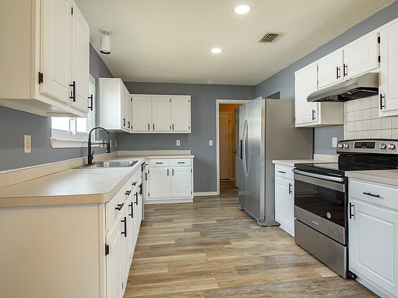 Beautiful 4 Bedroom home in established Sugar Creek Subdivision! Great floor plan with vaulted ceiling in the living room accented with plant shelves. The kitchen features stainless steel appliances, including a nice side by side refrigerator, restaurant style faucet and access to the garage via the indoor laundry room. Laminate flooring and tile throughout; No carpet in this house! Double vanity in both baths with tub/shower combos. The backyard is flat and privacy fenced with a concrete patio for your cookouts and a shed for all your yard gear. Roof, HVAC System, Water Heater, and appliances are all less than 5 years old. Only 5 minutes to the interstate, shopping, restaurants and much more.