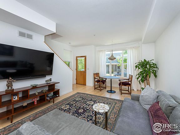 Sunny 2 story end-unit in the highly desirable Holiday neighborhood. Light-filled open floor plan includes living & dining room w/ bamboo floors and spacious kitchen w/ breakfast bar, gas oven/range & newer LVP flooring. Private back patio has space for table & grill to enjoy summer nights dining al fresco + covered front porch for sipping morning coffee. Powder room & separate laundry room round out the main level. Upstairs features large bedrooms w/ spacious closets. The shared bathroom has separate vanities & sinks for each bedroom creating privacy and convenience. Incredible location close to community parks, open space trails, NOBO Art District and Uptown restaurants & cafes. Easy access to Downtown Boulder and CU via the SKIP. HOA fee includes RTD EcoPass. The HOA minimum rental period is just 30 days, so this could make a great executive rental.