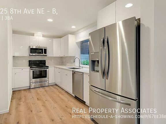 Welcome to this exquisite modern townhome, perfectly situated in the vibrant University District. Built within the last five years, this spacious and inviting residence boasts 8 bedrooms and 2.5 bathrooms, making it ideal for a large group of roommates or a big family seeking comfort and convenience. Step inside to discover sleek solid flooring and contemporary finishes, including stainless steel appliances that elevate the aesthetic and functionality of the home. Enjoy the convenience of an in-unit washer and dryer, making everyday chores a breeze. The shared kitchen is fully equipped with a large refrigerator, microwave, range, and dishwasher, ensuring all your culinary needs are met. Each level features a shared bathroom. The townhome's prime location puts you within walking distance of the University of Washington, grocery stores, restaurants, and shops. Whether you're a a group of students, young professionals, or part of a family, this home offers the perfect blend of style, comfort, and accessibility. Stay tuned - NEW pictures coming soon! 12-Month Lease Available Tenants responsible for all utilities Application: $45 per person/adult Refundable Security Deposit: $6000 Pet possible with prior approval and additional $300 refundable deposit - $35 monthly pet rent - 1 pet max, under 35 pounds, no aggressive breeds Renter's legal liability insurance is required and part of the Benefits Package ($30 monthly). If qualifying legal liability insurance is purchased and provided by tenant to RPA, the benefit package can be reduced to $15 monthly for reduced benefits or waived upon request. Professionally managed by: Real Property Associates, Inc. *In-person Tour Only Close To Shopping & Restaurants Close To Uw Full Kitchen Modern Townhome Rooming House University District Very Walkable And Very Bikeable On Walkscore.Com
