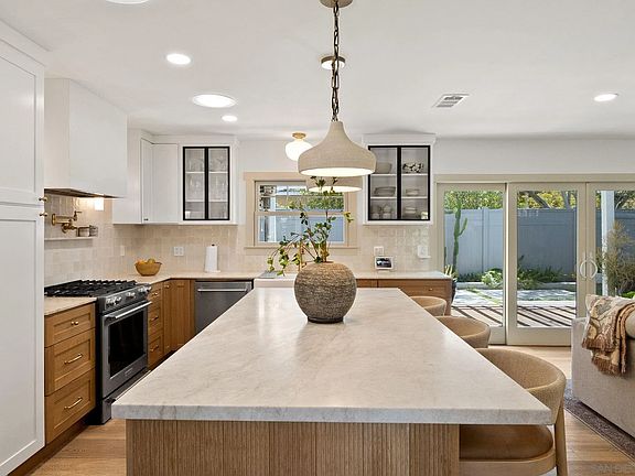 Welcome to 4725 Adams Ave., a beautifully renovated gem in the heart of the Historic Talmadge Park Estates. This single-level, 3-bedroom, 2-bathroom residence blends timeless charm with modern sophistication. Thoughtfully updated with designer finishes and custom archways, the home exudes elegance and warmth throughout. The open-concept floor plan offers seamless flow between the living room, dining area, and chef’s kitchen—ideal for entertaining or enjoying cozy nights at home. Double sliding glass doors open to a spacious backyard, where indoor-outdoor living comes to life. Enjoy dining on the deck, fire up the built-in BBQ, or relax while kids and pets play on the lush grass lawn. Talmadge is renowned for its tight-knit community and vibrant neighborhood spirit, featuring beloved traditions like food truck nights, block parties, community egg hunts, and the annual 4th of July parade. Conveniently located just minutes from major freeways, shopping, dining, and San Diego State University, this home offers both serenity and accessibility. 4725 Adams Ave. isn't just a home—it's a lifestyle.