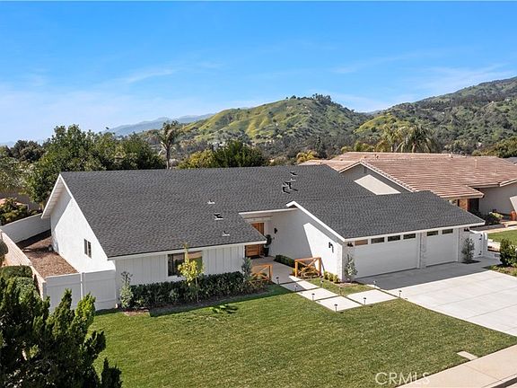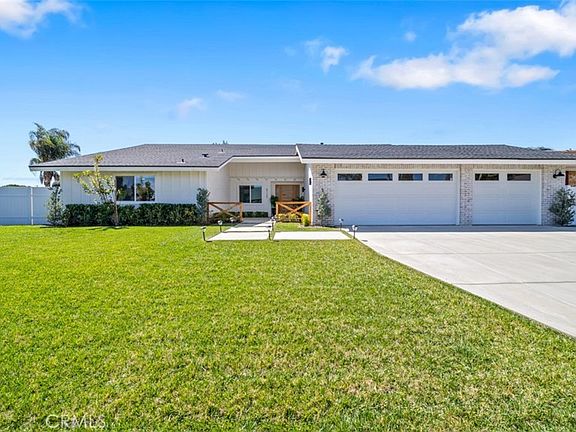 Wow, Wow, Wow, This Single Story 4 bed, 3 bath home on a large Lot is a 10 +++, It Looks and Feels Like a Brand New Custom Built Home!! This newly renovated home on a cul-de-sac in North La Verne has been exquisitely updated with a Modern Farmhouse Flair. NEW EXTERIOR: Roof, vinyl windows, board and batten siding, custom woodwork, brick veneer, paint, garage doors, exterior lighting, vinyl side gate and side door, custom landscaping & irrigation in front and rear, hardscape and a custom front door with trim. Newly landscaped rear yard with irrigation, fire pit and BBQ connections, new hardscape, and flat screen TV hookups, view of the foothills for the perfect outdoor entertaining area. NEW INTERIOR: Stunning entry with custom panel molding, coffered ceilings with accent lighting, wood like vinyl plank flooring. This home boasts a spectacular Open Concept Living Area with Spacious Living Room, Dining Room and a Spectacular Gourmet Kitchen, complete with recessed lighting and 3 sliding glass doors with an expansive view of the rear yard. THE REMODELED KITCHEN IS AMAZING! White shaker cabinetry w/ Pantry, quartz counter tops, large center island with a farmhouse sink & faucet, Z-Line stainless steel dishwasher and microwave, pendant lighting, storage drawers and seating area. 36” Z Line chefs 6 burner stainless steel gas range with lighted hood, quartz backsplash, Thor stainless steel French door refrigerator. Bar area with beautiful brick veneer walls, custom accent lighting, quartz countertop and a wine refrigerator. There is a powder room, a hall bathroom with custom tile, dual sinks, tub and shower. There are 3 spacious bedrooms with ceiling fans and mirrored wardrobe doors. The 4th bedroom has a sliding door which leads to the rear yard and a walk-in closet. The sliding farmhouse style barn door leads to the master bathroom which oozes luxury, with new cabinetry, dual sinks, recessed lighting, rainfall shower head, shower wand, tub and a custom linear drain. The house features new smooth coat walls, interior paint, vinyl windows, vinyl sliding glass doors, interior doors, casing & molding, Central Heat, Air and water heater. A huge plus is that the house is prewired for a home automation system equipped with a wireless access point and direct ethernet connections for all TV locations. Mud Room & Laundry Room with extra storage and sink. 3 car attached garage with new epoxy floors. Close to desirable La Verne Schools and shopping. THIS IS A MUST SEE!!
