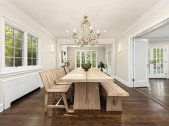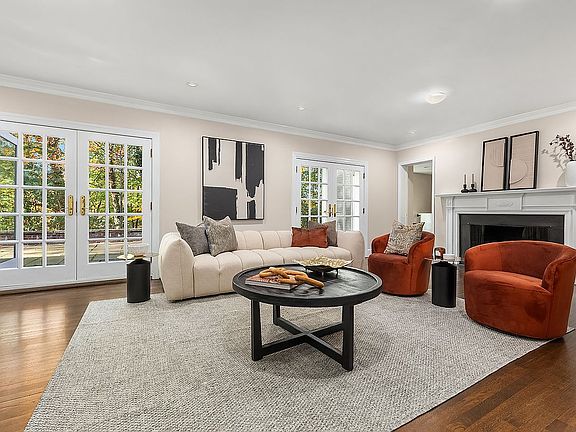 Step into the entry vestibule and the home opens with grandeur. A sweeping center hall sets the stage. To one side, a gracious living room with a wood burning fireplace draws you in with warmth and light and French doors that lead to the dining patio and the wide, level lawn. To the other side, a formal dining room stands ready for celebrations and evenings that stretch long into the night.