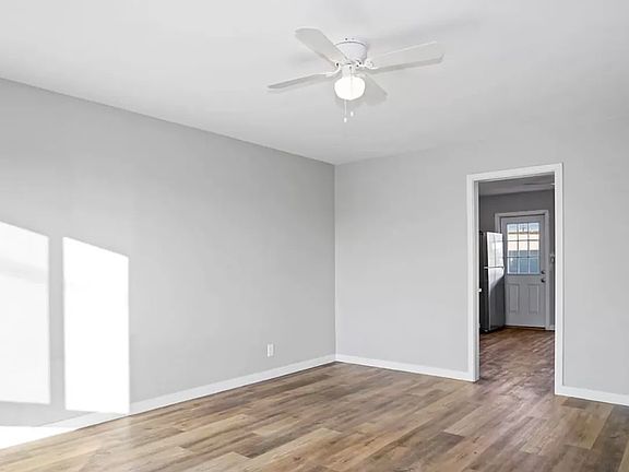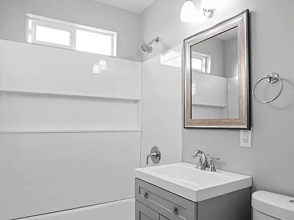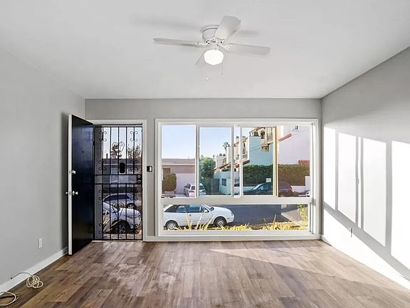 Located in the Clairemont/Bay Park area, this 2-bedroom, 1-bath unit includes vinyl plank flooring throughout. The kitchen has white cabinets, quartz countertops, stainless steel appliances, and matte black hardware. Each bedroom includes a ceiling fan and a closet. The bathroom includes a vanity with storage and a tub/shower combination with a tile surround.