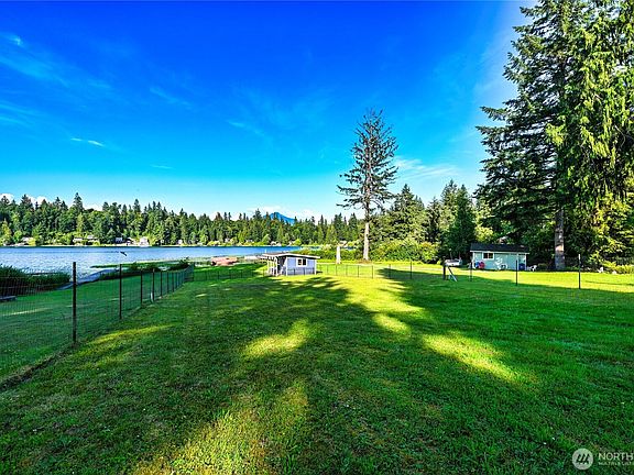 HALF ACRE of WATERFRONT on LAKE BOSWORTH. Easy access - level oversize parking for all your friends. Stunning views of Mt. Pilchuck & 50 feet of shoreline. No HOA. Main floor 813 sf/ 360 finished LOFT square footage per county records. AMAZING CONDITION offering a perfect blend of rustic charm & modern upgrades. Features include original wood craftsmanship, new roof, new windows, upgraded plumbing & electrical, pellet stove, & mini-splits with A/C. Renovated in 2020. PRIVATE DOCK, huge grassy lawn, & store your gear in the boathouse with power. Fish, swim, kayak & entertain. Only 42 miles from Seattle! RV parking. Public water. Lake stocked with Rainbow Trout & Largemouth Bass. 103 acre freshwater lake. Condo Alternative!