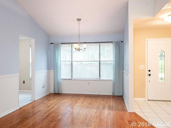 What a LOCATION!!! This cute home on a cul-de-sac has 4 bedrooms, 2 baths with a nice open kitchen. Wood floors on the great room, tile in the kitchen and foyer and brand new laminated wood floors in the bedrooms. Big great room with vaulted ceilings. Nice porch area over looking at a large fenced backyard. Walking distance to Kanapaha Middle School and Wiles Elementary School. Few minutes to Publix shopping center and restaurants. Close to UF and Shands hospital
