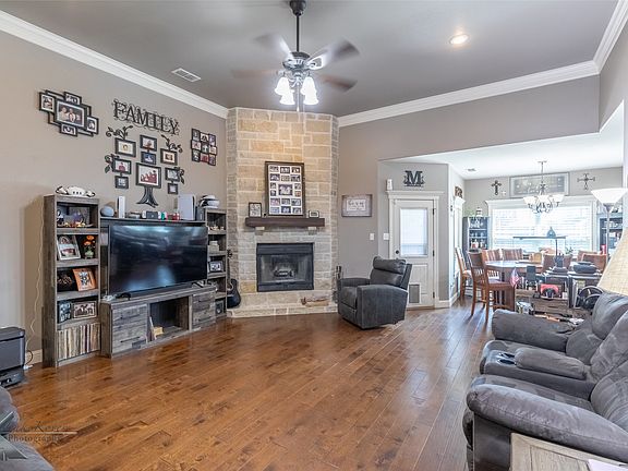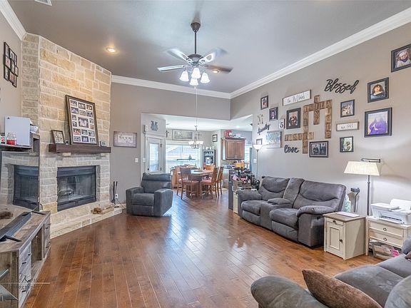 Fantastic 4 bedroom, 2 bath home in Southeast Abilene! Situated just minutes from Prime Time Family Entertainment Center, fine Dining at Copper Creek Restaurant, The Abilene Zoo, and Abilene Regional Airport, this location is more than ideal! The brick and stone exterior, landscaping, and a well manicured lawn give this home great curb appeal. Rich wood flooring, elevated ceilings, and a stone fronted fireplace are all welcoming features of the living room, while stainless steel appliances and granite countertops equip the kitchen. Plenty of built in cabinets and a corner pantry provide great storage. Bedrooms are split with the primary being ensuite. Here you will find a soaking tub, a separate shower, dual sinks, plus an amazing wrap around closet! The 3 remaining bedrooms are conveniently located near the second restroom and have good closet space. Outside, a sprinkler system helps maintain the fenced yard and the covered patio is a great place to enjoy morning coffee or weekend BBQs. This home is the total package! Come check it out!