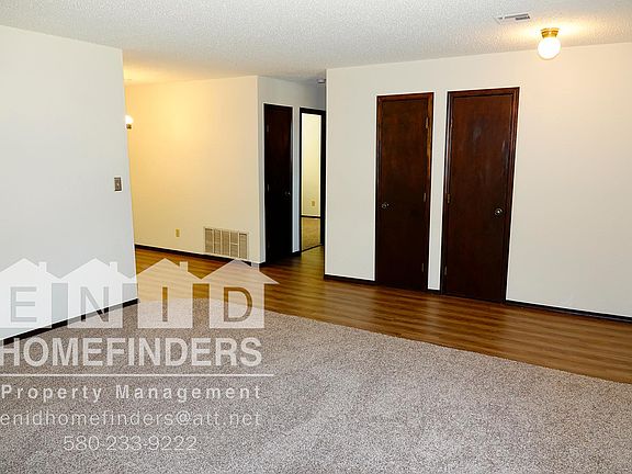 4725 Spring Ridge is an upstairs apartment in a 4-plex building. It has 2 bedrooms, 1 bathroom, stove, refrigerator and dishwasher. There are hookups for your washer and dryer. This unit has new carpet and plank flooring is central heat & air. This unit is on the westside of Enid near shopping and restaurants within walking distance.