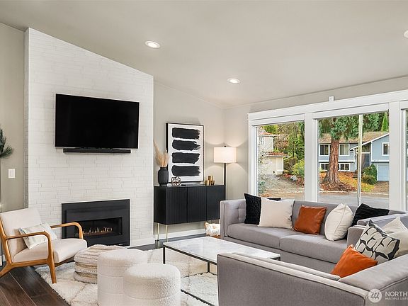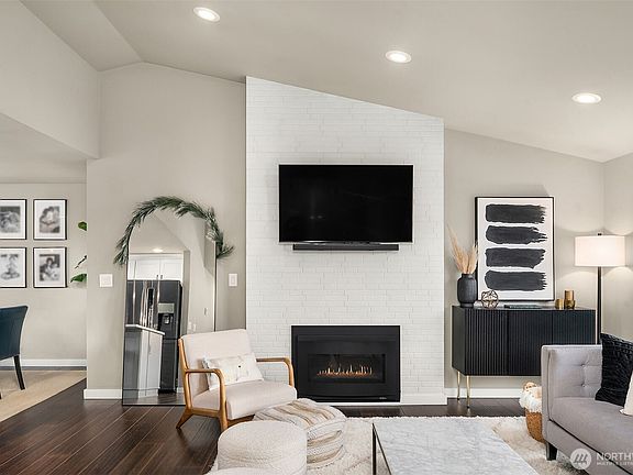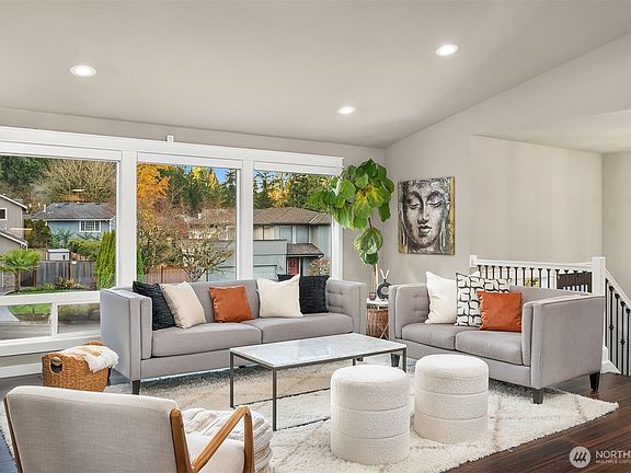 A home reimagined—completely redesigned with elevated finishes & cohesive style. Sophisticated yet casual w/ a distinctive open layout, vaulted ceilings & oversized picture windows inviting boundless sunlight. Incredible kitchen features natural-hue Pental Quartz island, maple cabinetry, high-end appliances & designer lighting. Spacious primary incl an ensuite remodeled bth w/ a dbl shower wrapped in Caesarstone quartz & Grohe fixtures. Newer, all-weather composite deck overlooks a expansive, professionally landscaped backyard. Recent updates include a 40-year comp roof, fence, doors, white vinyl windows, hardwood floors, garage doors, furnace & A/C. Quick commute to Bellevue/ Seattle, next to parks & lake! It doesn't get better than this!