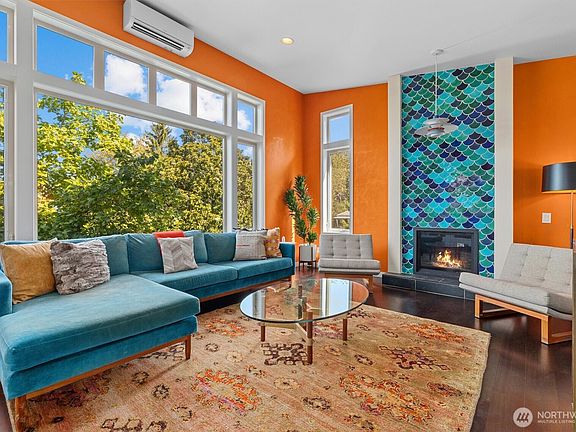 Just two blocks above Columbia City’s historic district on a tranquil street, this stunning home blends privacy, convenience, and charm. An open floor plan with soaring ceilings and large windows creates a treehouse-like feel among native greenery. The covered patio offers year-round enjoyment with views of Mount Baker and Lake Washington. The chef’s kitchen features a gas cooktop, quartz counters, and premium appliances. The primary suite includes a spa-inspired bath and blackout treatments for restful nights. A private porch with gas fireplace adds cozy outdoor living. Carefully curated finishes, hardwood floors, updated A/C, and EV charger complete the home. Minutes to Lake Washington, Seward Park, shops, dining, light rail, and cafes.