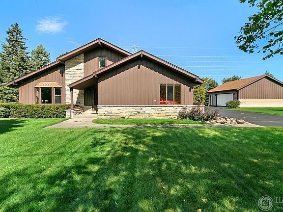 This home on over 1/2 acre features 3 large bedrooms, huge kitchen with sunken family room with stone fireplace. Two patio doors to concrete patio with fenced yard and mature landscaping. 5 car garage (2 attached and 3 car detached.) Rec-room in basement could potentially be a 4th bedroom.