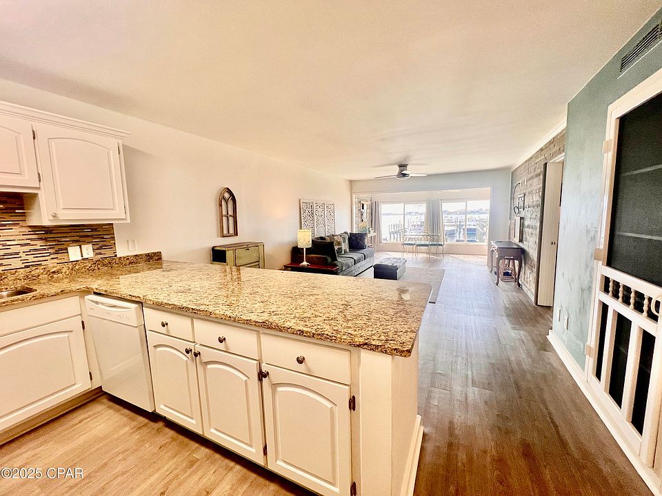 This spacious second-story unit offers unparalleled views of stunning sunsets, elegant yachts, playful dolphins, and the radiant lights of beach condos. A wall of new windows reveals breathtaking water vistas of the beautiful Grand Lagoon from every room, except the bathroom.