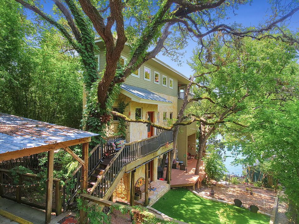 Beautiful 2,000+sf Lake Austin hideaway, grandfathered 3 stall boat dock on approximately 90' of frontage. Absolutely charming interior. Beautiful close up views of Lake Austin from lower level, main level and second floor. The best way to describe this house is to call it a charmer.