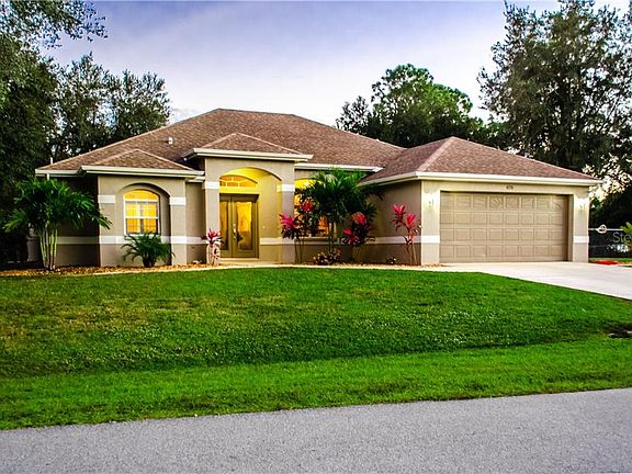 ***BACK ON MARKET - Deal fell through*** Don't miss this RARE opportunity to own this beautifully UPDATED home situated on THREE FULLY FENCED LOTS, surrounded by MATURE OAK TREES, and backed by a greenbelt for added privacy. IDEALLY LOCATED, this home is just MINUTES to I-75, shopping, dining and just a quick 30 minute trip to Englewood Beach! Some of it's gorgeously appointed features include STAINLESS APPLIANCES and EXOTIC GRANITE counters to compliment the CUSTOM KITCHEN cabinets, complete with soft close drawers, roll out pantry, roll out drawers for pots and pans, and wine rack. This bright and airy OPEN FLOOR PLAN has a SEPARATE LIVING ROOM and HUGE family room, finished with french doors for added separation when desired. The spacious master suite features TWO WALK IN CLOSETS, HIS and HERS double vanities with DUAL SINKS, private water closet, a JETTED SPA TUB, separate WALK IN SHOWER with natural stone mosaic floor and bench seat. In addition, you can enjoy features such as 20" diagonal laid tile and Pergo wood laminate flooring throughout, two tone paint, chair rails, beautifully updated bathrooms with GRANITE, TONS of STORAGE, and potential 4th bedroom. There is plenty of room for a pool, or you can visit the new North Port Aquatic Center or West Port development coming soon! Enjoy a ballgame at the new Braves Spring training stadium or Charlotte Sports Park just minutes up the road. The well maintained Lennox 4 ton 19 seer AC was installed in 2012, new well equipment in 2017, newer water heater in the last 2 years, two 10' x 14' sheds with power, and a spacious custom built chicken coop with easy access nesting boxes and enclosed run that will remain on the property. Owner is a licensed real estate agent. No flood insurance required! Garage is currently an AC office space with a closet and storage room. Owners are willing to convert it back to a traditional garage before closing if requested by buyer.