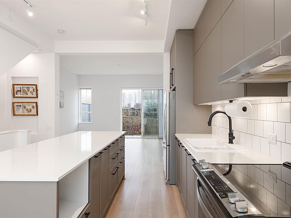 3-year-new Seaside West II by Mosaic! This bright 3-bedroom, 2.5-bath East/West-facing townhome offers abundant natural light and an open-concept layout. The main floor features 10-foot ceilings and large windows that flood the space with sunlight. The gourmet kitchen is thoughtfully designed with quartz countertops, stainless steel appliances, and a large island, perfect for everyday living and entertaining. A well-built home in a desirable Tsawwassen community. Enjoy exclusive access to the Seaside Clubhouse, including a fully equipped fitness centre, outdoor pool, games room, and social areas. Conveniently located close to schools, golf courses, Tsawwassen Mills, and scenic oceanfront trails. Some pictures are virtually staged. Move-in ready.