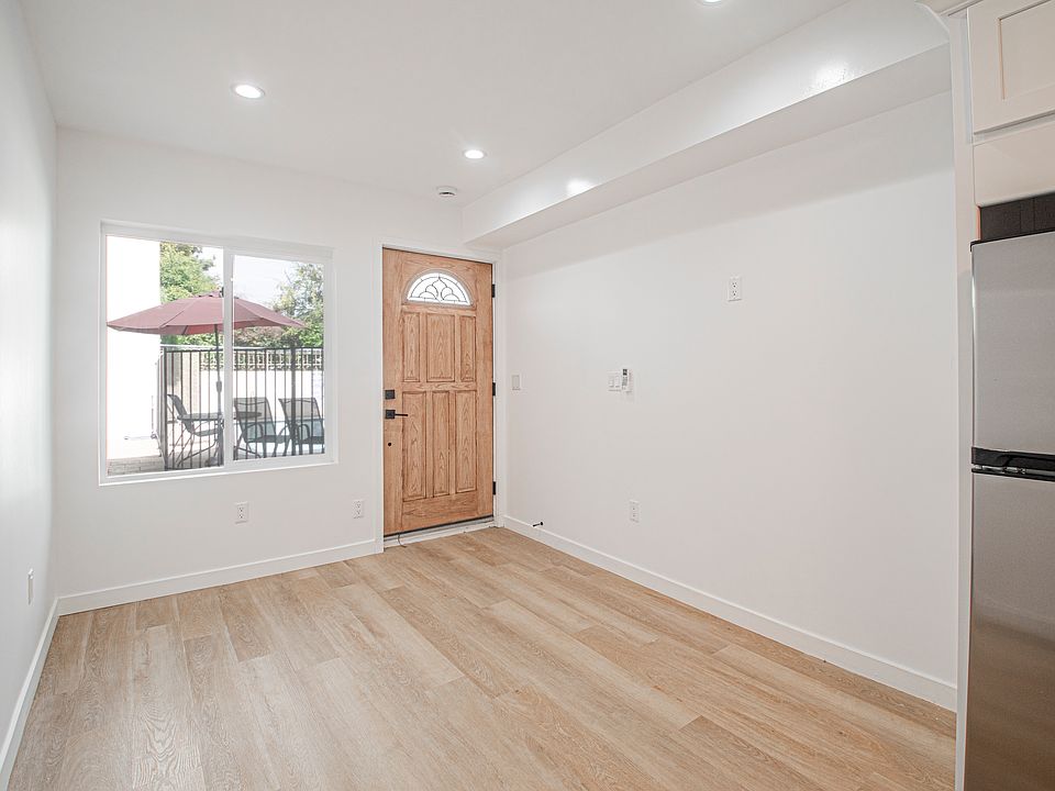 This bright and inviting unit is filled with natural sunlight from large windows and features a wall-mounted A/C to keep you cool. The kitchen offers custom cabinets, quartz countertops, and stainless steel appliances, while the bathroom includes a hardwood vanity, well-lit mirror, and walk-in shower. Water, sewage, and trash are included in the rent, and on-site laundry facilities make washing convenient. A parking space is provided, approved pets are welcome with minimal pet rent, and residents can enjoy access to the sparkling community pool.