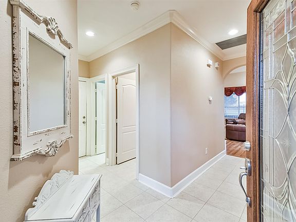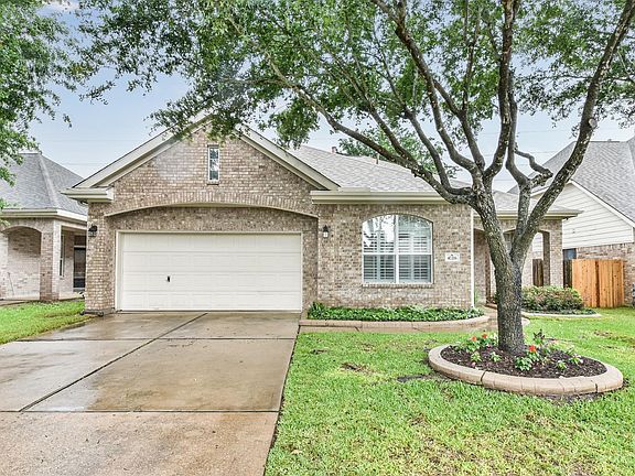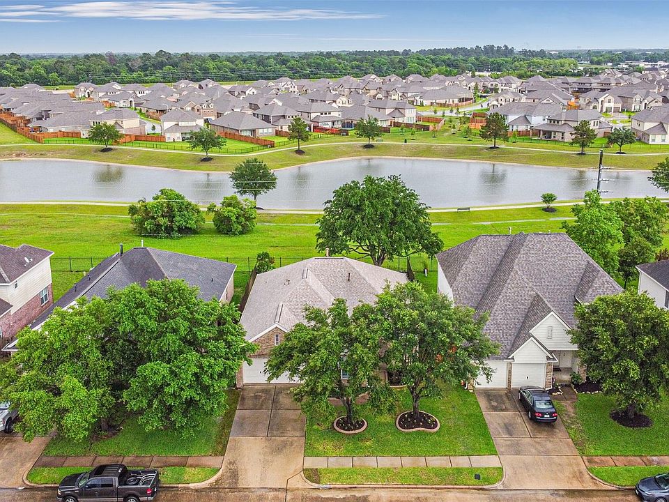 BEE in LOVE!! Immaculately maintained 1 story located on the lake & walking trail. Roses and flower beds invite you onto the cute front porch. Leaded glass door opens into home with tiled entry. Spacious family room has soaring ceilings, recessed lighting and gorgeous crown molding and trim. Laminate wood floors in den and primary bedroom. Kitchen is open to den and has gorgeous granite countertops & updated stainless steel appliances. Large breakfast room suites a large table and hutch. Master suite is SWEET!! Perfect for a large suite of King sized furniture. Posh bathroom has double vanities, garden tub, separate shower and large walk-in closet. 2 secondary bedrooms offer generous sized closets. Enjoy morning coffee on your back covered patio overlooking the large yard, a beautiful oak tree and a lake through the wrought iron fence. Sprinkler system, security system and steel frame construction. Floorplan lives well. Schedule your appointment today!!