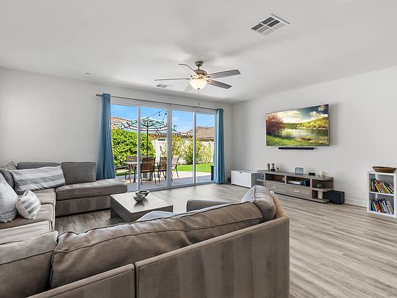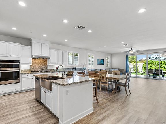 Experience the best of Fallbrook living in this SINGLE-LEVEL home w/ OWNED SOLAR, 5 years left on the builder warranty, & abundant natural light! The open-concept layout is perfect for entertaining, featuring a spacious kitchen, large island, walk-in pantry & ample storage. The kitchen opens to the dining area & huge living room with views of the rear yard via French sliding doors. Luxury vinyl flooring throughout living spaces. Other features include low maintenance yard, HOA pool/clubhouse, water softener, & easy freeway access.