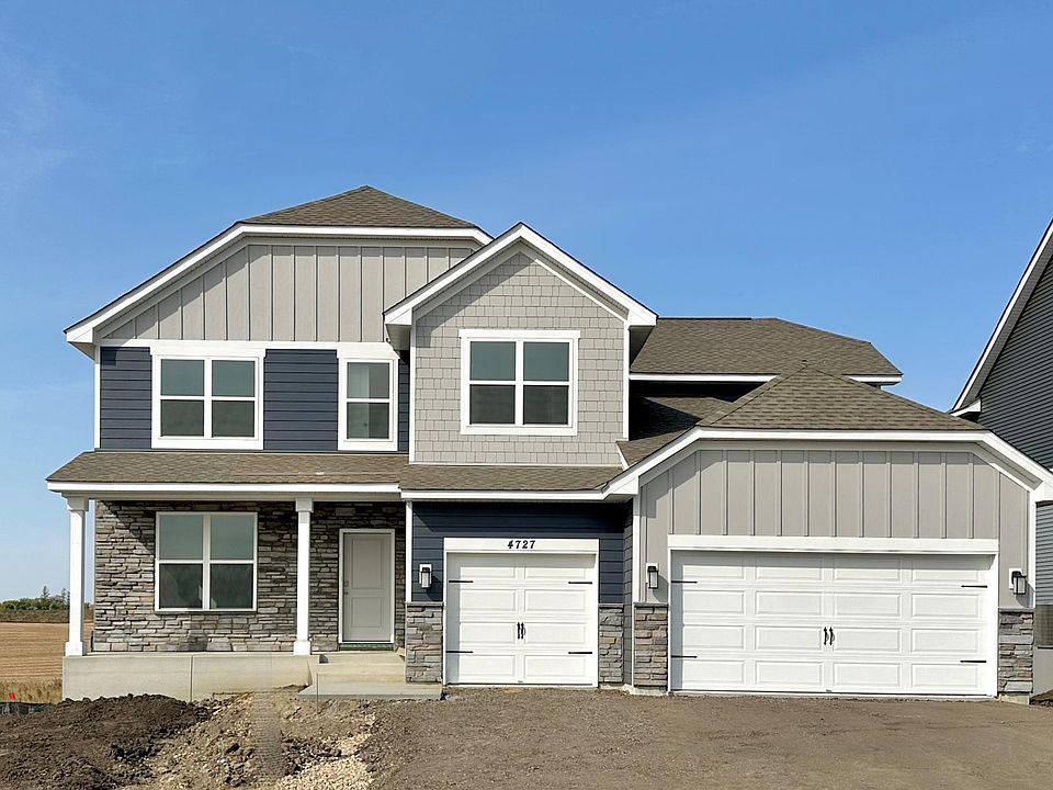 An exciting new opportunity in construction by D.R. HORTON, America's Builder. Rivertown Heights is adjacent to a future 90 acre City of Chaska Park and is a NO HOA community. Quick access to 212! THE JORDAN, our most popular floor plan, open concept with a main level bedroom that creates a versatile floor plan. Beautifully designed DOUBLE OVEN IN WALL signature kitchen with quartz countertops, tile backsplash, vented microwave to outside & huge walk-in pantry. Upper-level laundry, large loft, four bedrooms, incredible primary suite dual sinks, soaker tub and tile shower, TWO walk-in closets. Homesite is a lookout. Light grey designer inspired cabinet color package. Exterior of this home includes boulevard tree, in yard sprinkler system, and a fully sodded yard. Smart Home Technology with white glove installation service included. 1, 2, and 10 year warranty covers new construction from the date of closing.